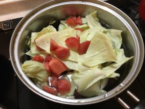 この日は、キャベツ、たまねぎ、にんじん、じゃがいもの4種。